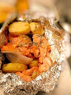 銀鮭とじゃが芋のローズマリーホイル焼き