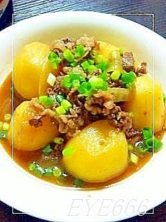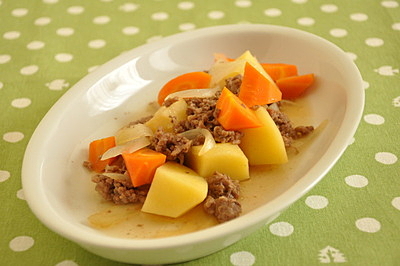 楽天レシピ:「初心者でも簡単にできる そぼろ肉じゃが 」より