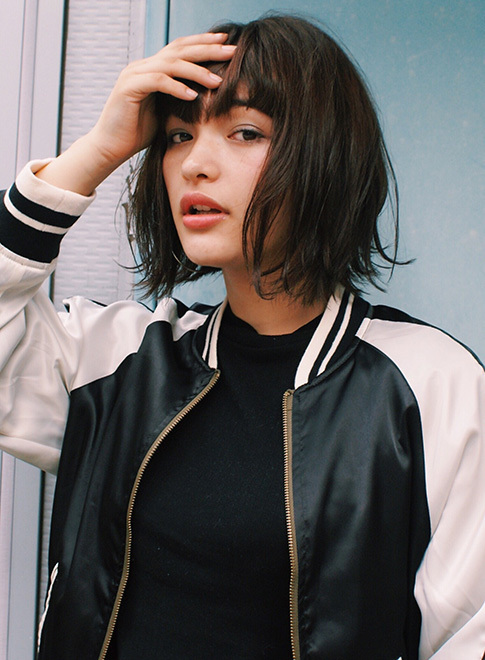 出典:http://beautynavi.woman.excite.co.jp シンプルな重めの切りっぱなしボブ。長めのバングで脱力感のあるスタイルに。ウェットタイプのスタイリング剤を揉み込んでラフでオシャレに☆