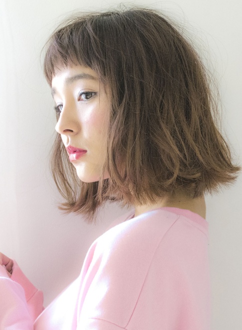 出典:http://beautynavi.woman.excite.co.jp うぶバングと無造作ェーブで、思いっきりラフなくせ毛風ボブ☆透明感のある透け感カラーがオススメです。