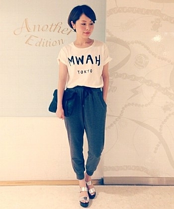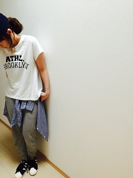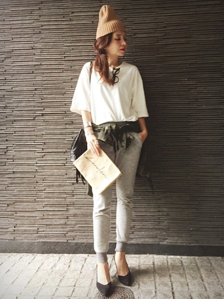 Tシャツ×スウェットのゆるっとコーデでも