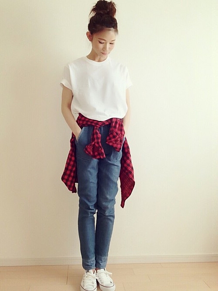 腰にチェックシャツ巻く人は