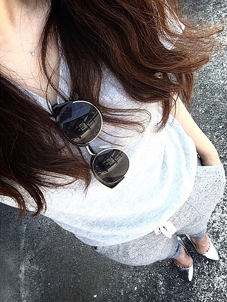 胸元にサングラスをかけたり、