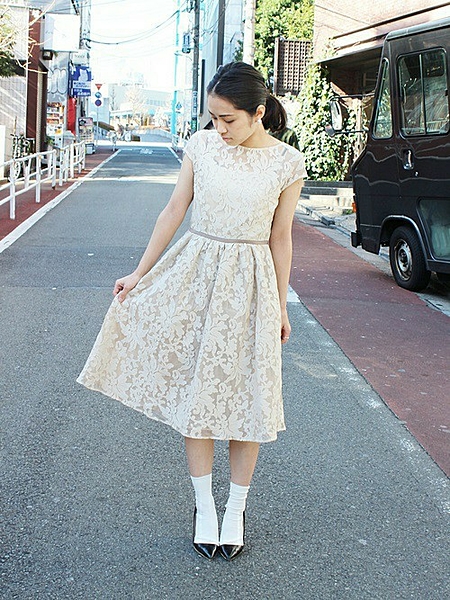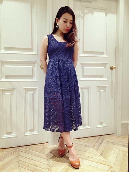 総レースウエスト切替ひざ丈ワンピース/31 Sons de mode