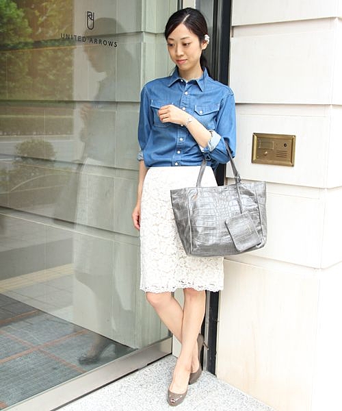 総レースの華やかなデザインで、スタイルをランクUPさせるスカート。脚を程良く覆うレングスながらも、タイトなシルエットで重たいイメージになる事なくスッキリと穿きこなせます。生地の透け感を活かした裾のラインが女らしさを高めるポイント。