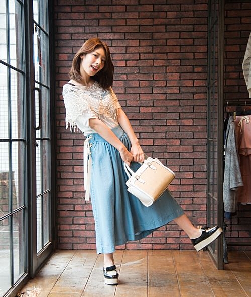 足元をスニーカーにすれば、ガーリーさを抑えてくれてヘルシーに着こなせます