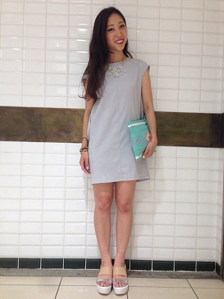 ハイウエストのワンピで脚長効果アップ。