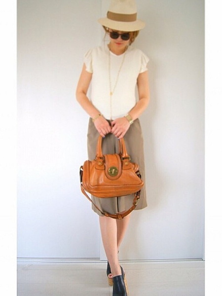 シンプルなコーデにカンカン帽を