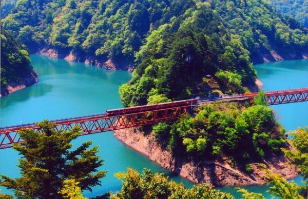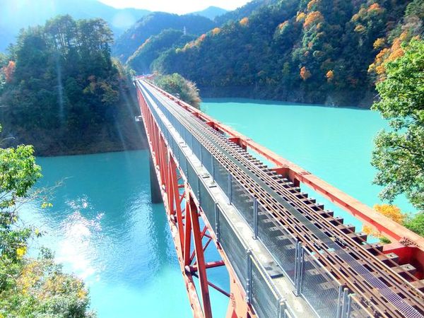 トロッコを間近で見たり、橋の上から湖を見れたり