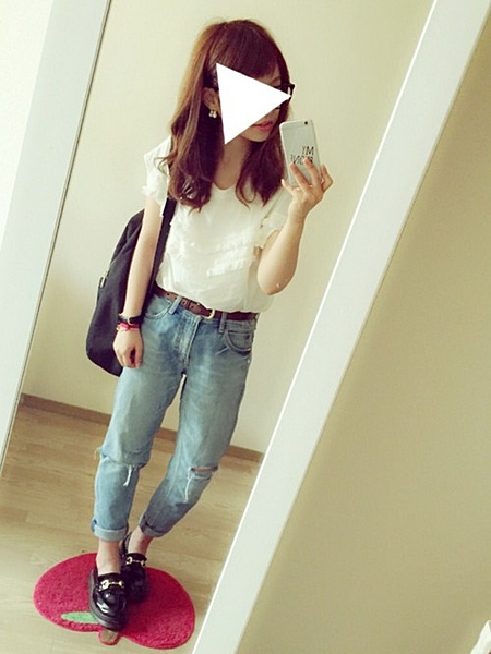 白のトップスを合わせればデニムコーデだって甘めに決められる。