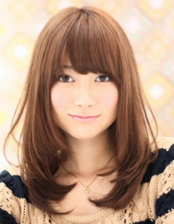 出典:http://girly.today 顔まわりのサイドにあごレングスの髪を作ったかわいらしい印象のストレート。前髪を分けておでこを覗かせるスタイリングもマッチする髪型ですね。