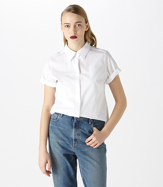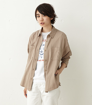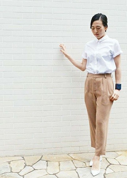 スタンダードなホワイトカラ―シャツ。中でも、ベージュカラ―との組み合わせは鉄板です!シャツは、裾をロールアップすれば、キレイなディテールに。トップスと足元のカラ―を合わせて、統一感のあるスタイリングを心がけてみて。