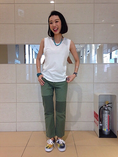 やや明るいカーキカラーのパンツですね。