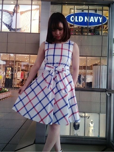 今年人気のギンガムチェックのノースリーブワンピース。ウエスト切り替えのメリハリデザインが、女性らしいシルエットを演出します。カーディガンを羽織れば上品に。