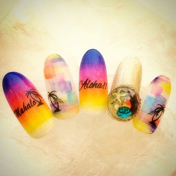 Sunsetをイメージしたヤシの木ネイルは