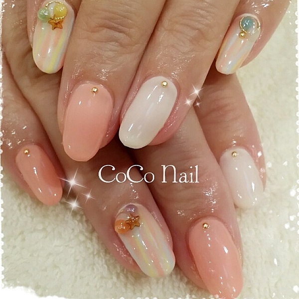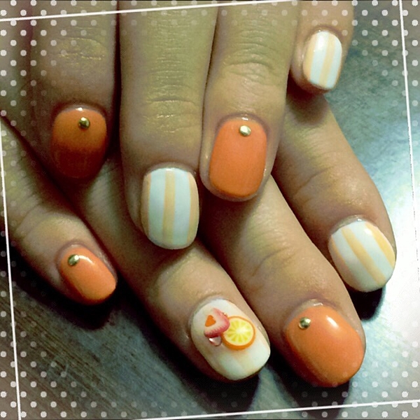 シンプルなネイルのなかに1本だけギュっと夏らしさを詰め込んだネイル。