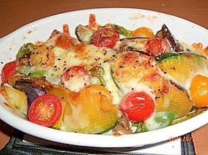 彩り鮮やか 夏野菜とサーモンのチーズ焼き