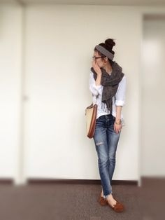 出典:https://jp.pinterest.com 定番の低めのポニーもマフラーとの相性がいいアレンジ。トップをふわっとさせたほうがおしゃれに見えますね。人気のパールのピアスとの相性もいいですね。