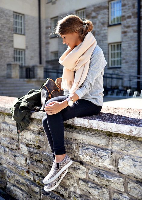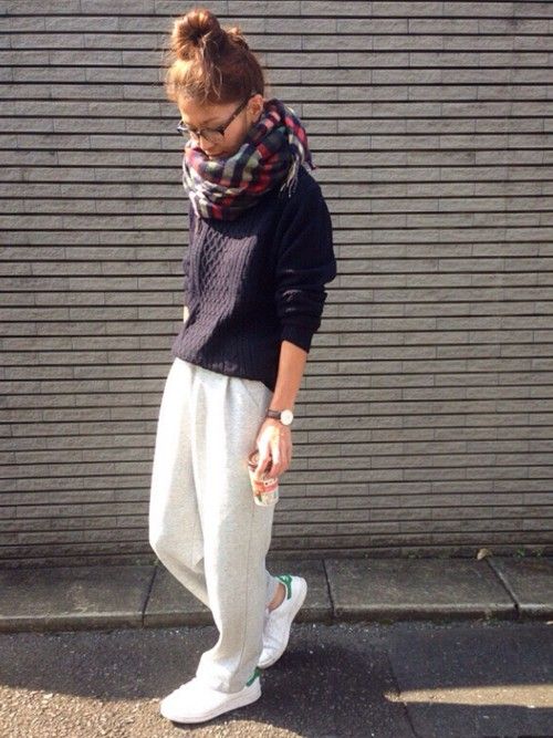 出典:https://jp.pinterest.com 高めのポニーはカジュアルなファッションとの相性がいいですね。ルーズにまとめたポニーと、スニーカーやチェックのマフラーなどのファッションのバランスをよくしています。