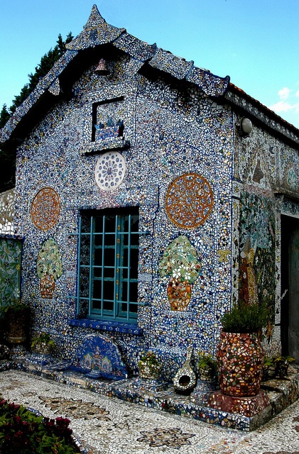 お墓にあったキレイな陶器の破片を持ち帰り、家の壁に貼ったことから始まり、1930年から25年の歳月をかけ、コツコツとレイモンさん1人で完成させたそう。