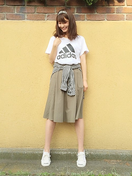 シンプルなコーデの時はタイダイ柄のスカートで足元に彩りを♪