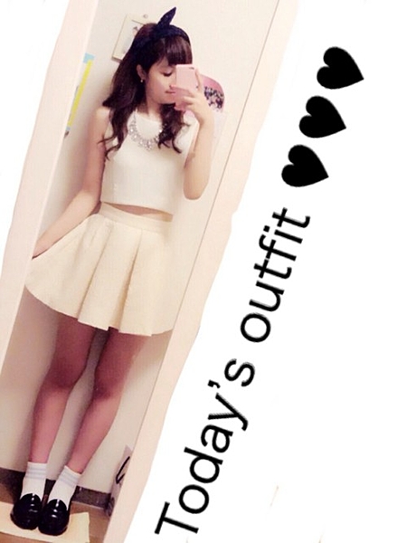 ホワイトコーデ+お腹ちら見せで女の子120%♡