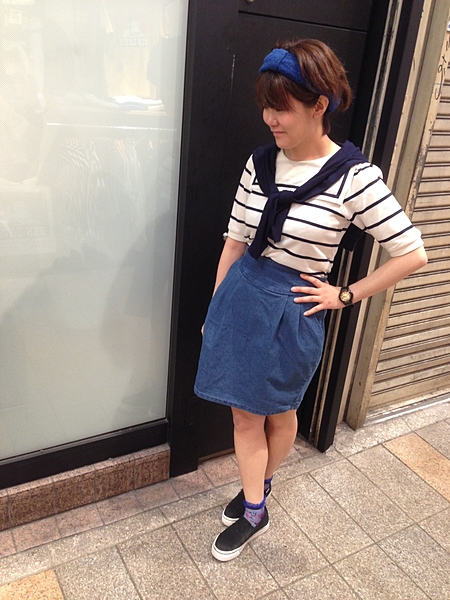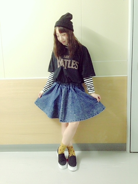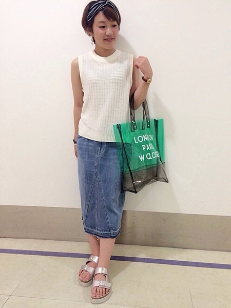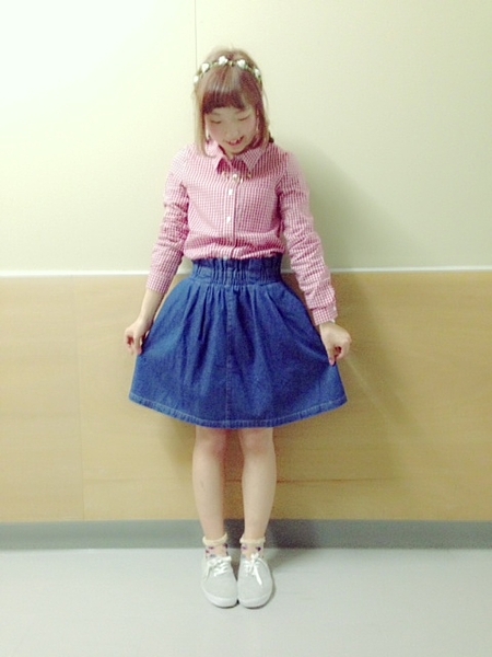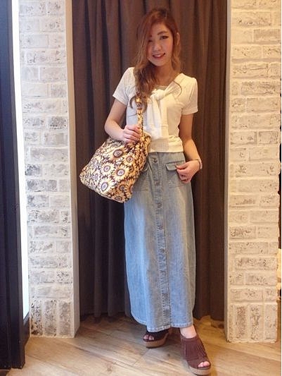 デニムスカートには白トップスを使えばイイみたい♡