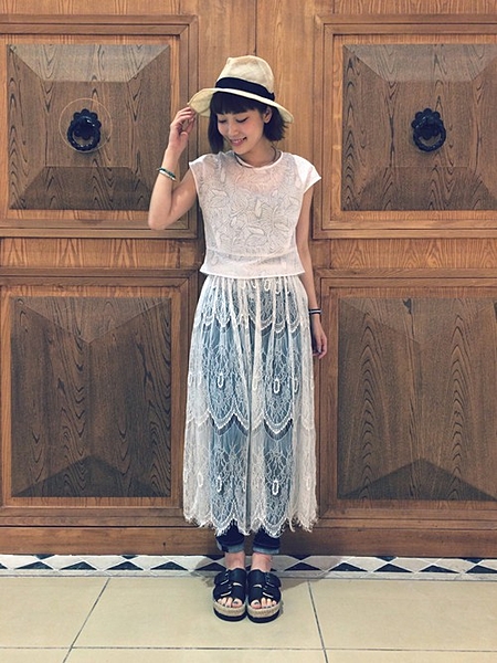 レーススカートを重ねるだけでトレンドスタイルに♡