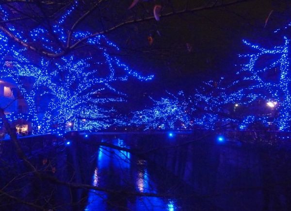 目黒川が、とてもうっとりしてしまう青い光で埋め尽くされていました。