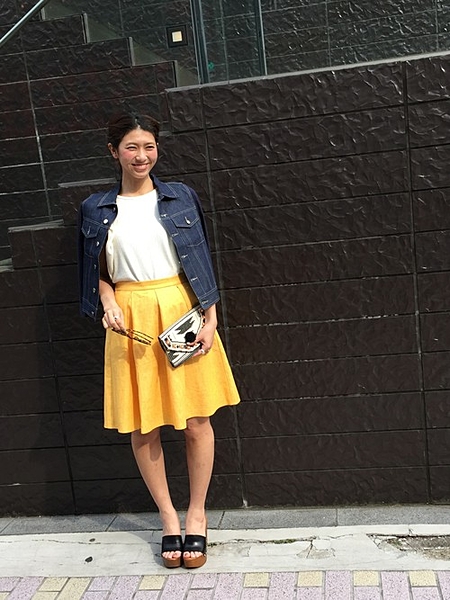 イエローのスカートを主役にした華やかなコーディネート。”夏色”はこのくらい鮮やかなほうがしっくりくるんです♡