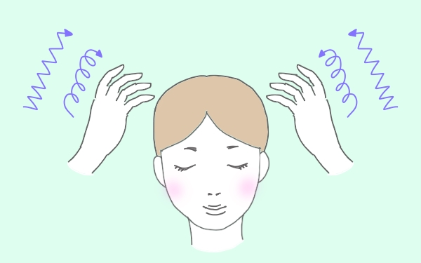 指の腹を使って、頭全体をマッサージします。ボールを握ったときの手の形で、ジグザグ小刻みに。次に、クルクルらせんを描くように、頭皮全体をほぐします。爪を立てると頭皮を傷つけるので、優しく手早くを心がけましょう。