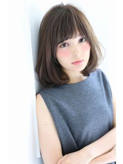 ぱっつんな前髪も毛先をすこし巻くことで大人フェミニン感がでます。