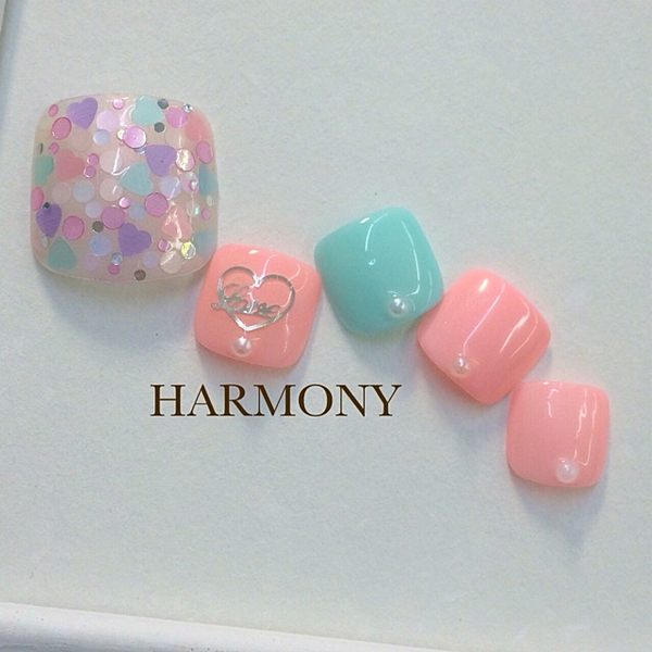 夏になるとサンダルなどで足先を露出する機会が増えますよね。だからとびきり可愛いフットネイルに挑戦しませんか?少ししか見えないからこそ目立つフットネイルにしちゃいましょ◎オススメなのはホログラムたっぷり♡夏の日差しにも負けないような煌めくキュートなネイル。サンダルからホログラムたっぷりの煌めくフットネイルを見せちゃおう♭
