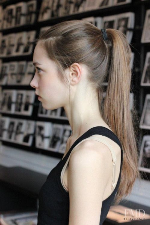 ストレートの髪でのポニーテールはまた違ったテイストに。