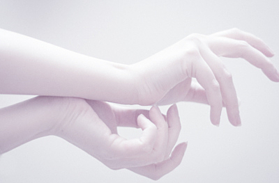手首下全体に塗り広げ、手の甲は指はクルクルと親指で押しながら指先に向かってマッサージします