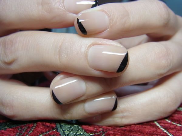 こちらは肌になじみのあるピンクベージュをベースにブラックのフレンチが施されたシンプルだけど大人っぽいネイルです。