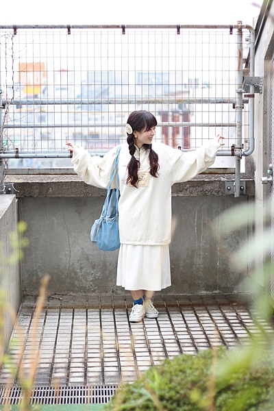 すっきりしたシルエットにサイドのボタンが可愛い♡