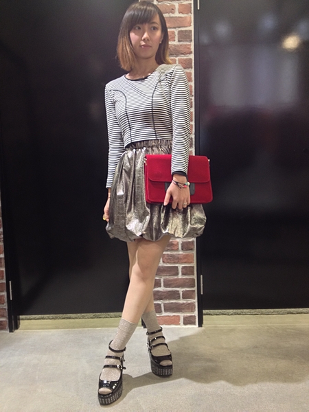 ボーダー×人気のメタリックバルーンスカート。