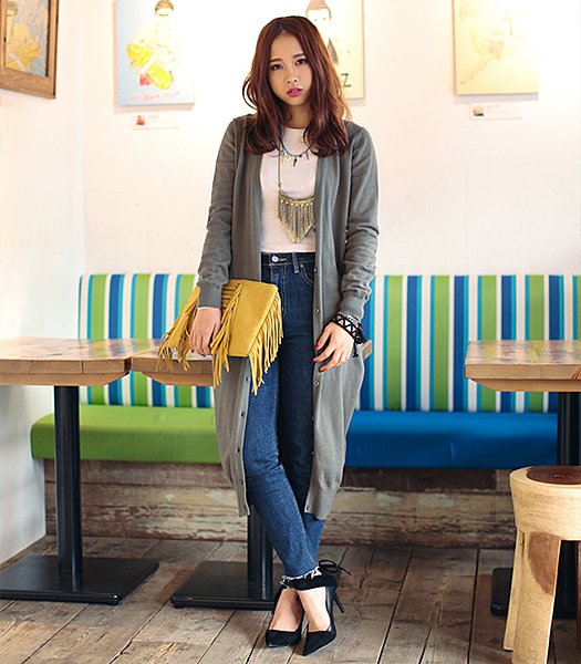 カーデのウェスト巻きでスタイルアップ
