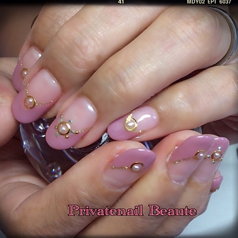 少し燻んだピンクにパールで上品に。