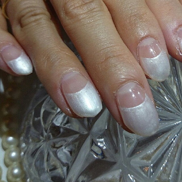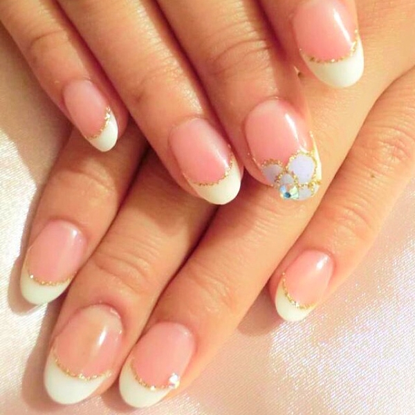 定番フレンチにラメとストーンで飾りつけ!
