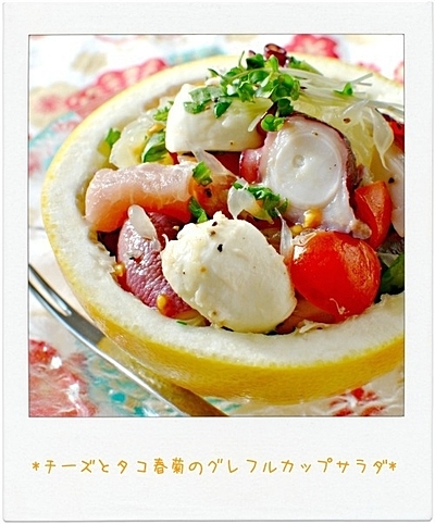 ◇チーズとタコ春菊のグレフルカップサラダ◇