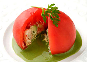 ◇トマトのファルシ 小松菜ヨーグルトソース◇