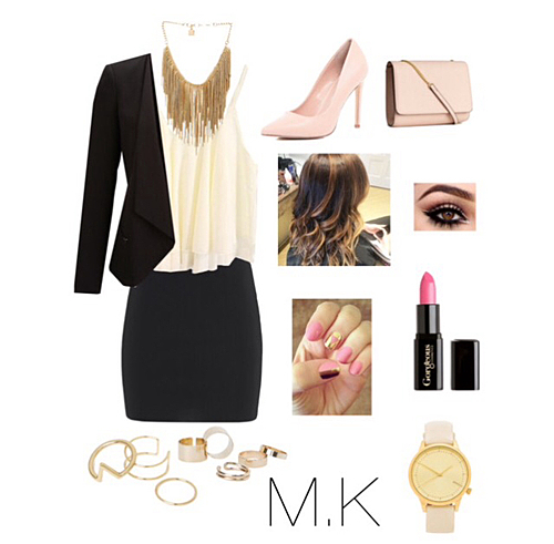 こちらもジャケット、インナー、ヒールを合わせてブラックの締め色を使ったコーデ。
