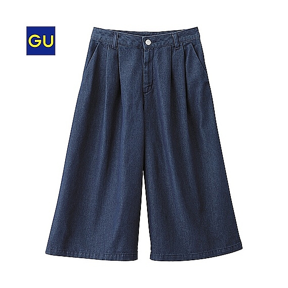 今、GUで¥1490で買えるタック入りデニムガウチョパンツが大人気なんです!