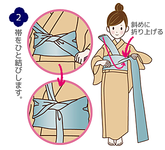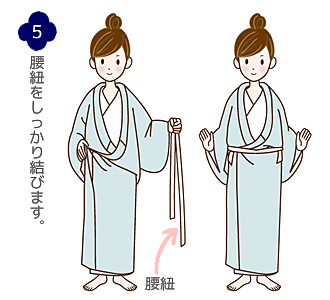 腰ひもを苦しくならない程度に、しっかりと結びます。