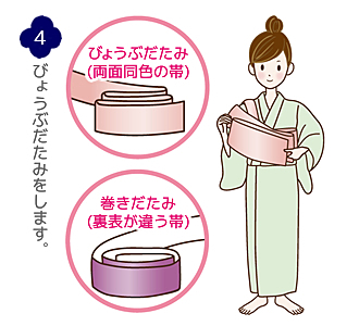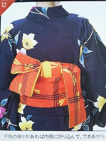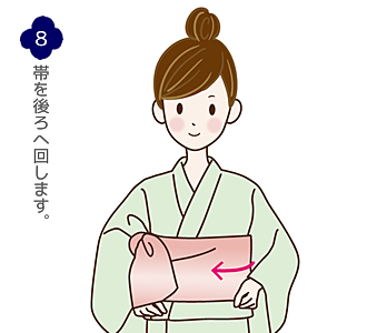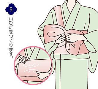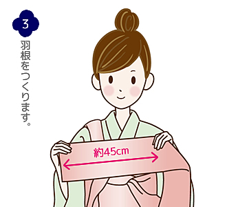 ※このときに、帯がずれやすいので、▶にした部分の帯と腰ひもを洗濯ばさみで止めておくと楽になります。