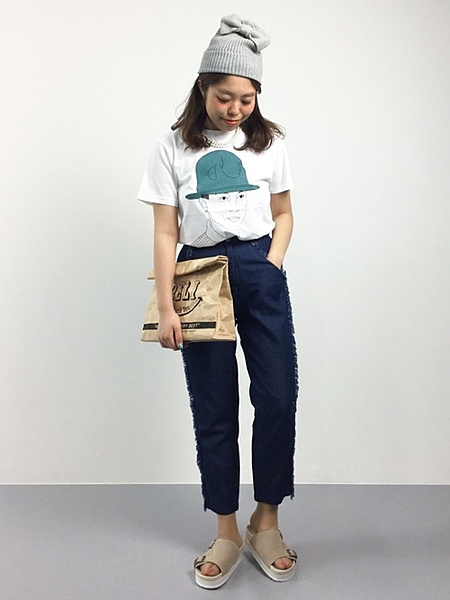 シンプルなデニムには自分だけのお気に入りのイラストTシャツを合わせてコーディネートをより一層楽しんじゃいましょう♡