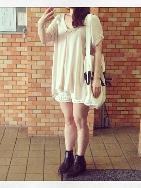インナーに新売るなホワイトキャミソールを着て、