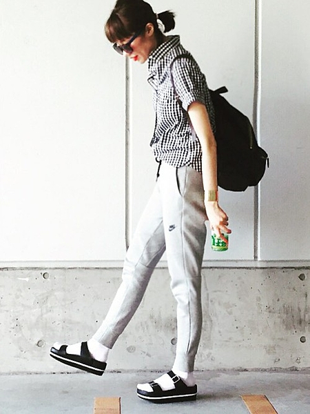 スウェットパンツにリュック!